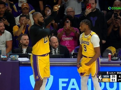 Όπερ και εγένετο! Κατά τη διάρκεια της 2ης περιόδου στην πρεμιέρα των Λέικερς στην «crypto.com Arena» του Λος Άντζελες, ΛεMπρόν και Μπρόνι πέρασαν ταυτόχρονα στο παρκέ προκαλώντας πραγματικό πανδαιμόνιο στις εξέδρες.