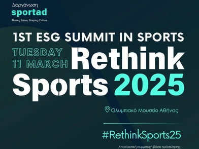 Η βιωσιμότητα στον αθλητισμό δεν είναι επιλογή – είναι επιτακτική ανάγκη. Στις 11 Μαρτίου 2025, η Sportad διοργανώνει το Rethink Sports 2025: Establish Sustainability Goals, το πρώτο συνέδριο ESG στον ελληνικό αθλητισμό, φέρνοντας στο προσκήνιο τις στρατηγικές και τις πολιτικές που θα καθορίσουν το μέλλον του αθλητισμού με υπευθυνότητα, καινοτομία και ανθεκτικότητα.