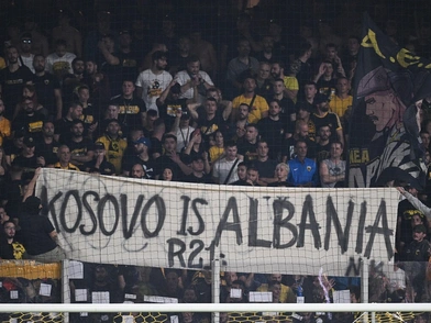 Αντιδράσεις έχουν ξεσπάσει με το πανό που αναρτήθηκε από οπαδούς της ΑΕΚ στον αγώνα κόντρα στον Άγιαξ που έγραφε «Το Κόσοβο είναι Αλβανία», με φόντο τις εντάσεις που επικρατούν στην περιοχή το τελευταίο διάστημα.