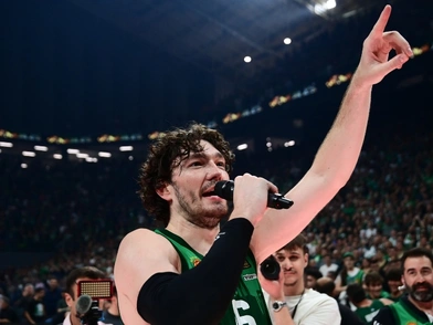 Μέσα στον γενικό χαμό στο glass floor με παίκτες, παιδάκια («Γκραντάκια, λεσοράκια», Σαρπ Αταμάν) και όλη την οικογένεια των «πρασίνων» με τον «θείο» Χουάντσο επικεφαλής, διακρίνεται ο MVP του Game 5 Τσέντι Όσμαν, με το μικρόφωνο στο χέρι.