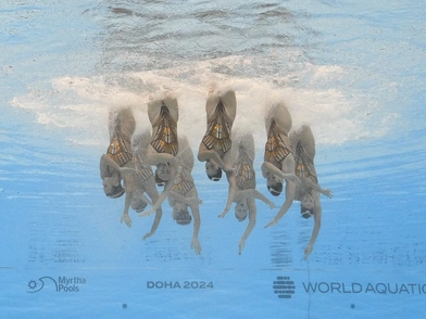 Στον τελικό του ελεύθερου προγράμματος κατάφερε να προκριθεί η Ελλάδα, στο περιθώριο του Παγκόσμιου Πρωταθλήματος Υγρού Στίβου στην Ντόχα του Κατάρ, όπου το προηγούμενο Σάββατο κατέκτησε το χρυσό μετάλλιο η Ευαγγελία Πλατανιώτη.