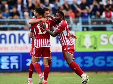 Ο Ολυμπιακός, με γκολ των Γιόβετις, Ελ Καμπί, αυτογκόλ του Κορνέζου και Ελ Αραμπί, έκανε επίδειξη δύναμης στο «Αθανάσιος Διάκος» και πλέον περιμένει εντός έδρας τη Φενέρμπαχτσε για τα προημιτελικά του Europa Conference League.