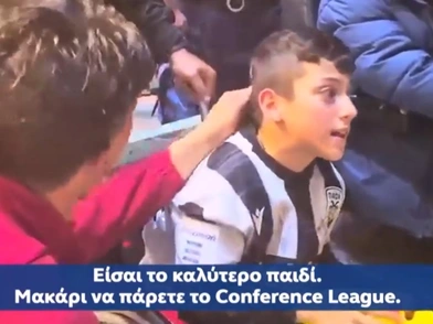 «Είσαι το καλύτερο παιδί» είπε ο Κωνσταντίνος Τζολάκης στον Γιάννη Παπαστεφανάκη, με τον δεύτερο να απαντάει: «Μακάρι να πάρετε το Conference League».