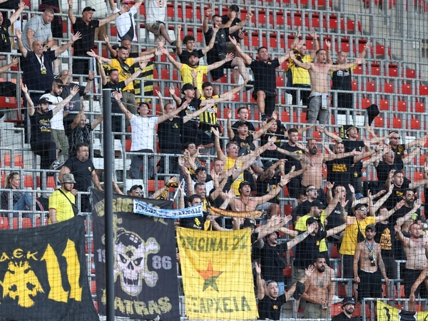 Παρά την αντίδραση της ευρωπαϊκής ομοσπονδίας, οι οπαδοί της ΑΕΚ που ταξίδεψαν στην Ουγγαρία για τη ρεβάνς συνέχισαν να εκδηλώνουν τη στήριξή τους στην Παλαιστίνη.