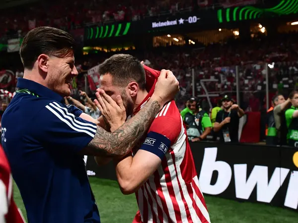 Στη συνέχεια, ο Κώστας Φορτούνης, ήταν εκείνος που σήκωσε στον ουρανό της Νέας Φιλαδέλφειας την κούπα του Conference League.