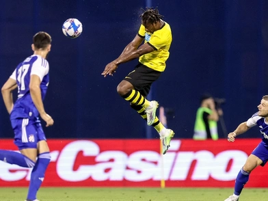 Τέσσερα λεπτά μετά το γκολ της ΑΕΚ, η Ντιναμό Ζάγκρεμπ είχε δοκάρι σε κεφαλιά του Εμρέλι.