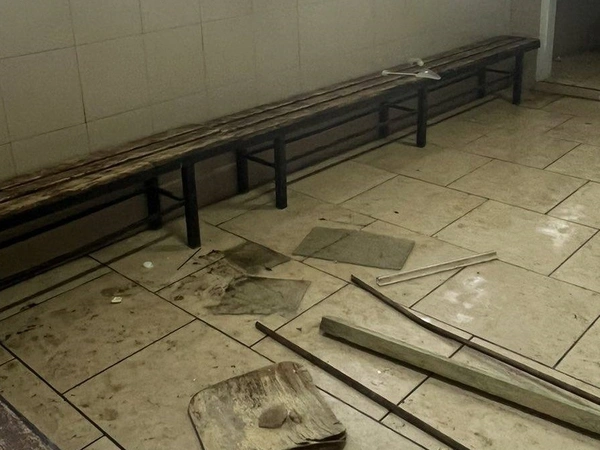 Ο Μανδραϊκός δημοσίευσε μάλιστα φωτογραφίες από τις ζημιές που προξένησαν στα αποδυτήρια οι μαινόμενοι οπαδοί των γηπεδούχων.