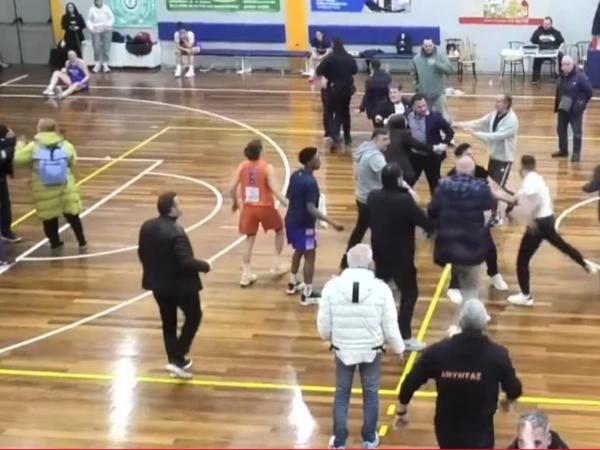 Πέρα από το διαδικαστικό της κατάστασης, μετά το φινάλε της αναμέτρησης αυτό που έμεινε ήταν η μεγάλη σύρραξη που προκλήθηκε στο παρκέ των γηπεδούχων. Συγκεκριμένα, όπως φαίνεται και από τη μετάδοση του ματς στο Youtube του Αμύντα BC, οι οπαδοί της ομάδας φαίνεται να φωνάζουν συνθήματα κατά του προπονητή της Ανόρθωσης, Γιώργου Βλιώρα, ο οποίος δεν μπόρεσε να διατηρήσει την ψυχραιμία του και στράφηκε με τη σειρά του προς την εξέδρα.