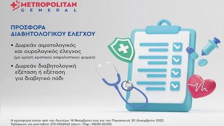 14.11.22 12:00 ΥΓΕΙΑMetropolitan General: Προσφορά διαβητολογικού ελέγχου με αφορμή την Παγκόσμια Ημέρα Διαβήτη