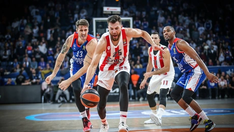 01.12.22 21:29 ΑΘΛΗΤΙΣΜΟΣΞέμεινε από δυνάμεις στο τέλος ο Ολυμπιακός - Ηττα από την Εφές στην Πόλη με 82-71