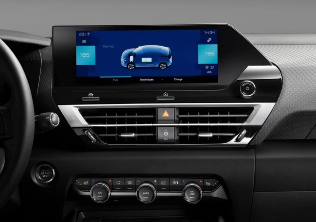 Το εσωτερικό του νέου Citroen Ë-C4 C-Cross είναι υπόδειγμα αισθητικής αρτιότητας και εξασφαλίζει μοναδική εργονομία, πληρότητα και πρακτικότητα. Τα ψηφιακά όργανα, το προαιρετικό head up display αλλά και το προηγμένο σύστημα multimedia με την ευρεία οθόνη αφής των 10 ιντσών στο κέντρο του, προσφέρουν απόλυτη πληροφόρηση και συνδεσιμότητα, με ευκολία χρήσης.