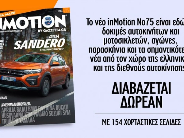 Μέσα από τις σελίδες του νέου inMotion 75 ανοίγεται εμπρός σας όλος ο κόσμος του αυτοκινήτου και της μοτοσικλέτας. Νέα μοντέλα που οδηγήσαμε, νέα μοντέλα που αναμένουμε, δράση στις πιο συναρπαστικές πίστες αλλά και θέματα που θα διευκολύνουν την επιλογή του επόμενου αυτοκινήτου ή της μοτοσικλέτας σας, βρίσκονται στις 154 χορταστικές σελίδες αυτού του τεύχους.