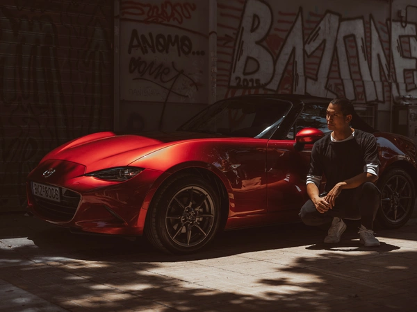 Πίσω από το τιμόνι ενός MX-5, το θρυλικό μοντέλο της Mazda που δεν αφήνει κανέναν ασυγκίνητο, o Σωτήρης βιώνει αυτό που η μάρκα διαχρονικά πρεσβεύει: Jinba Ittai, ή αλλιώς την εναρμονισμένη και απόλυτη σύνδεση του οδηγού με το αυτοκίνητο.