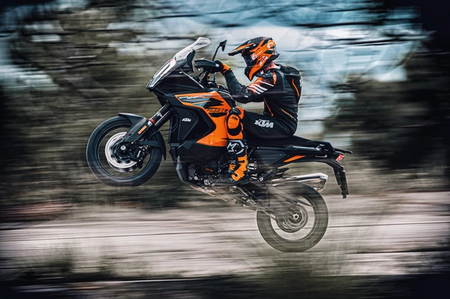 Το πιο εντυπωσιακό όμως είναι ότι όλη αυτή η δύναμη είναι χρησιμοποιήσιμη από τον αναβάτη. Ο κινητήρας, το στιβαρό πλαίσιο – χωροδικτύωμα, οι αναρτήσεις και τα φρένα εργάζονται και συνεργάζονται αρμονικά και φυσικά σε πολύ υψηλό επίπεδο. Δεν θα περίμενε κανείς κάτι λιγότερο από την κορυφαία μοτοσικλέτα της ΚΤΜ, άλλωστε. Το αποτέλεσμα είναι ότι οδηγείς μια μοτοσικλέτα που μπορεί να πάει πραγματικά παντού. Στην άσφαλτο είναι «βιδωμένη» και προσφέρει απόλυτη σιγουριά. Εκτός δρόμου οι δυνατότητές της είναι επίσης τεράστιες και οι τροχοί των 19 ιντσών εμπρός και 17 πίσω θα βοηθήσουν και σε αυτές τις επιφάνειες.