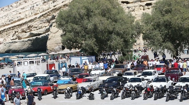 Το εμβληματικό χωριό Μάταλα με την διάσημη σε παγκόσμιο επίπεδο παραλία του ήταν η επόμενη στάση του υπέροχου στόλου των δεκάδων κλασσικών αυτοκινήτων και μοτοσυκλετών.