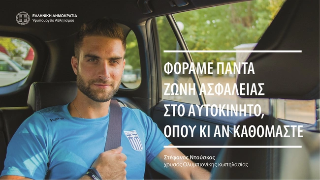 Στο θέμα της οδικής παιδείας και συμπεριφοράς, το Υφυπουργείο Αθλητισμού διαδραματίζει εξαιρετικά σημαντικό ρόλο, αξιοποιώντας τον αθλητισμό, τους Ολυμπιονίκες και τους πρωταθλητές μας. Σε αυτό το πλαίσιο, κατά τη διάρκεια της εκδήλωσης προβλήθηκαν δύο μηνύματα οδικής ασφάλειας. Στο πρώτο, ο χρυσός Ολυμπιονίκης στην κωπηλασία Στέφανος Ντούσκος τονίζει: «Φοράμε πάντα ζώνη στο αυτοκίνητο, όπου κι αν καθόμαστε», ενώ στο δεύτερο ο αρχηγός της Εθνικής Πόλο και αργυρός Ολυμπιονίκης, Γιάννης Φουντούλης, υπενθυμίζει: «Φοράμε πάντα κράνος και προστατευτικά στη μηχανή».