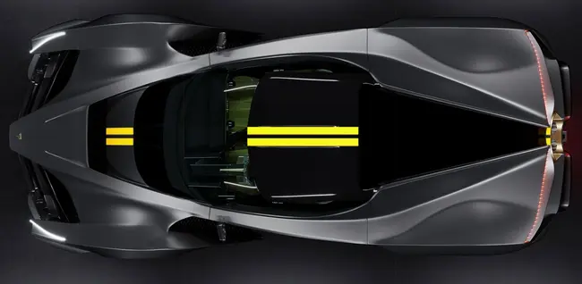 Οθόνες αφής υπάρχουν και μπροστά από τον συνοδηγό, ενώ ακόμα και οι πόρτες ανοίγουν με σύστημα αφής. Οι μοναδικοί διακόπτες βρίσκονται στο τούνελ ανάμεσα σε οδηγό και συνοδηγό. Τα καθίσματα είναι ενσωματωμένα στο σασί και φυσικά, όλα είναι γεμάτα ανθρακόνημα.
