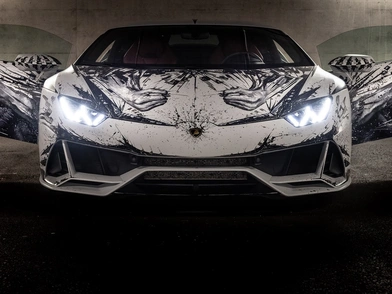 Ο 49χρονος Πάολο Τροΐλο είναι μια ιδιαίτερη περίπτωση ζωγράφου, καθώς αντί για πινέλα χρησιμοποιεί τα δάχτυλά του για να δημιουργεί, χρησιμοποιώντας ως θέμα το ανδρικό σώμα. Αυτό έκανε και πάνω στο αμάξωμα της Huracán EVO, θέλοντας να αναδείξει το δυναμισμό του αυτοκινήτου και να τον συνδυάσει με το μύθο του Μινώταυρου, που όπως γνωρίζουμε ήταν μισός άνθρωπος και μισός ταύρος.