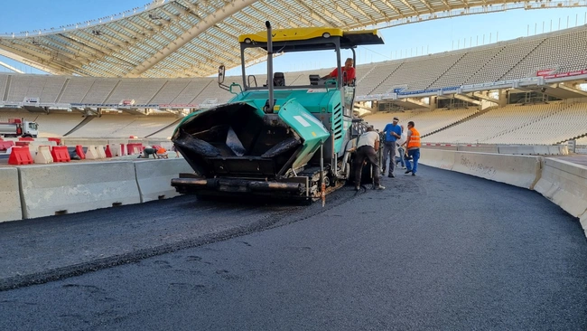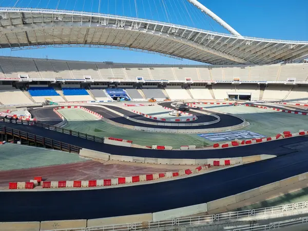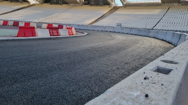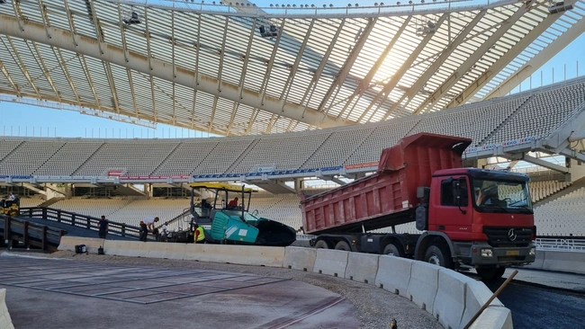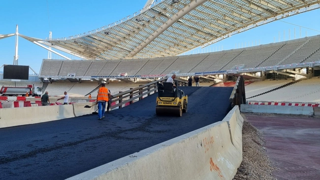 Ο αγωνιστικός χώρος του Ολυμπιακού Σταδίου μεταμορφώνεται σταδιακά σε… πίστα, σε μία εντυπωσιακή παράλληλη διαδρομή όπου την προσεχή Πέμπτη, οι κορυφαίοι rallymen του κόσμου θα μάχονται σε δυάδες με τα θηριώδη αγωνιστικά τους αυτοκίνητα.