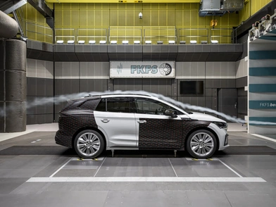 Έτσι οι ειδικοί της Skoda διαπιστώνουν την ακριβή ροή του αέρα γύρω από το αμάξωμα, αλλά και από κάθε σημείο. Επίσης οι τροχοί του αυτοκινήτου περιστρέφονται, πάνω σε ειδικούς κυλίνδρους, καθώς η κίνησή τους επηρεάζει τη ροή του αέρα. «Στόχος είναι ο συντελεστής οπισθέλκουσας (Cd) να διατηρηθεί όσο το δυνατόν χαμηλότερα», τονίζει ο Ζντένεκ Σλουπένσκι, συντονιστής εξωτερικής αεροδυναμικής για την πλατφόρμα ΜΕΒ, στην οποία βασίζονται τα ηλεκτρικά αυτοκίνητα του Ομίλου Volkswagen.