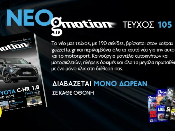 Στις 190 σελίδες του νέου gmotion 105 θα βρείτε και αυτό το μήνα όλα τα νέα για την αυτοκίνηση, ώστε να ενημερωθείτε δωρεάν, online αλλά και offline με ένα download σε κάθε συσκευή.
