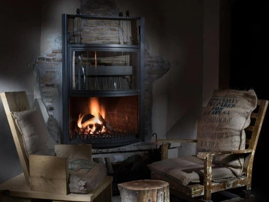 Όσο ο ήλιος πέφτει και ο ουρανός σκοτεινιάζει, η ατμόσφαιρα γίνεται ακόμη καλύτερη, καθώς ο φωτισμός του χώρου σε συνδυασμό με τη φωτιά στο τζάκι, φτιάχνουν το τέλεια σκηνικό.