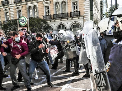 Πιο αναλυτικά, η ΕΛ.ΑΣ. επισημαίνει ότι «γύρω στις 12:00 το μεσημέρι στον πεζόδρομο της Κοραή στο κέντρο της Αθήνας, συγκεντρώθηκε ομάδα περίπου 400 ατόμων. Από τις αστυνομικές δυνάμεις που ελάμβαναν μέτρα τάξης, εκλήθησαν κατ' επανάληψη να διαλυθούν», κάτι που δεν συνέβη. Όπως αναφέρει στην ανακοίνωση της η ΓΑΔΑ, «οι συγκεντρωμένοι προσπάθησαν να απωθήσουν τις αστυνομικές δυνάμεις, προκειμένου να λάβουν θέση επί του οδοστρώματος της οδού Σταδίου και να πραγματοποιήσουν πορεία.
