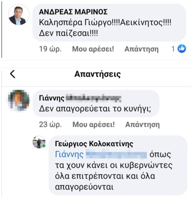 Στο ίδιο κλίμα, ο δήμαρχος τον επαινεί αναρτώντας το σχόλιο «Αεικίνητος!!!! Δεν παίζεσαι!!!!».