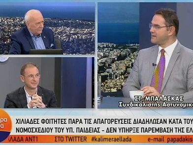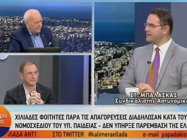 Ο πρόεδρος ΠΟΑΣΥ και συνδικαλιστής αστυνομικός, Σταύρος Μπαλάσκας, ήταν καλεσμένος στην εκπομπή «Καλημέρα Ελλάδα» του ΑΝΤ1, όπου και κλήθηκε να σχολιάσει το μαζικό φοιτητικό συλλαλητήριο της Πέμπτης και γιατί η αστυνομία δεν παρενέβη εφόσον δεν τηρούνταν τα μέτρα για τις συγκεντρώσεις κάτω των 100 ατόμων.