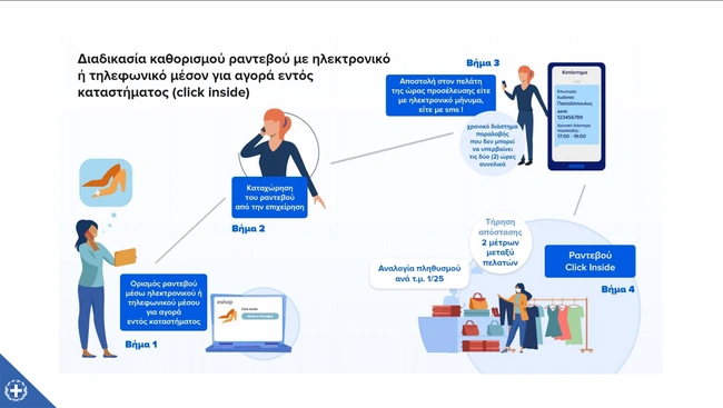 Σε καταστήματα ένδυσης, υπόδησης και σε βιβλιοπωλεία, ο καταναλωτής θα μπορεί να κλείνει ραντεβού υπό προϋποθέσεις (click inside).