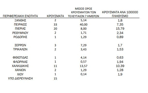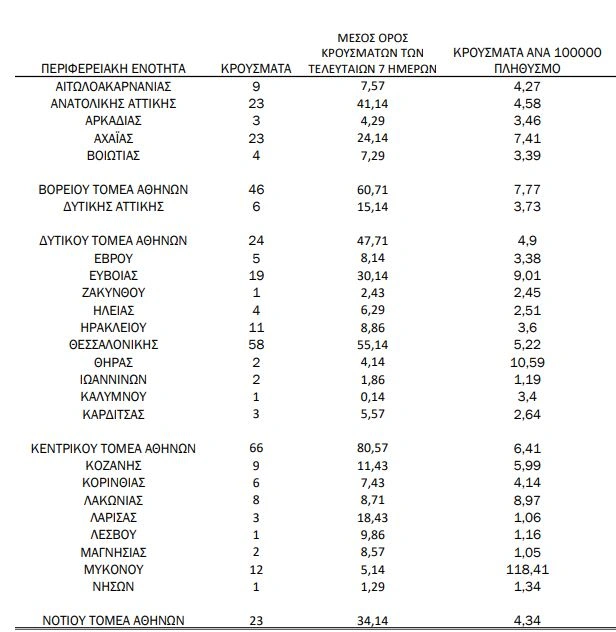 - Αχαΐα: 23 κρούσματα,