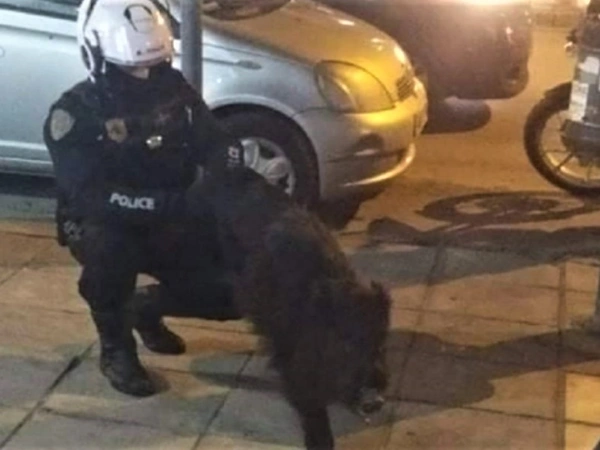 Σύμφωνα με το ρεπορτάζ του voria.gr, δυνάμεις της ΕΛΑΣ που έσπευσαν στο σημείο ενημέρωσαν τη φιλοζωική και μέχρι να γίνει η παραλαβή του άγριου ζώου, ένας εκ των αστυνομικών το συγκρατούσε από τα πόδια, όπως φαίνεται και στις φωτογραφίες, που δημοσιεύθηκαν στη σελίδα του Northmeteo.gr στο Facebook.