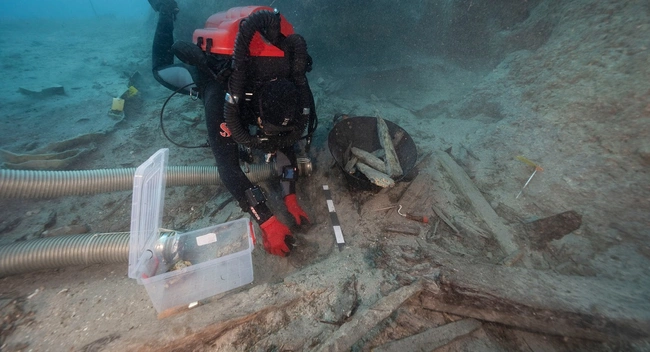 Κατά τη φετινή υποβρύχια ανασκαφική έρευνα, συνεχίστηκε η διερεύνηση και ανασκαφή της τομής που είχε ήδη αρχίσει το 2019, στο δυτικό όριο του σωζόμενου σκαριού του πλοίου.