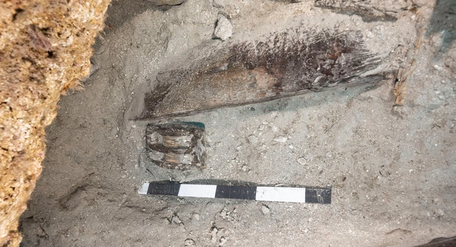 Στον χώρο της τομής εντοπίστηκαν πολλά ξύλα, τόσο από το πέτσωμα του πλοίου, όσο και τμήματα νομέων.