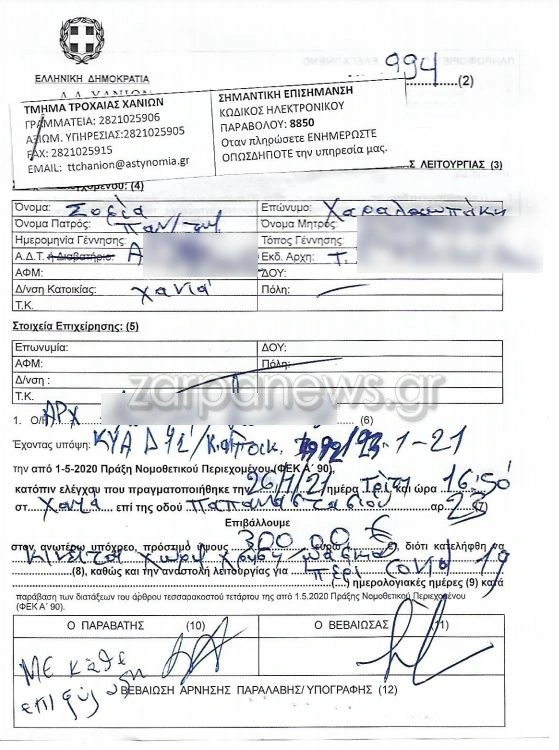 Σύμφωνα με το zarpanews.gr, η κυρία Σοφία Χαραλαμπάκη, αναφέρει πως μετέφερε καυσόξυλα με αυτοκίνητο, στο οποίο επέβαινε ο σύντροφός της, με τον οποίο όμως δεν είναι παντρεμένη. Ένας από τους αστυνομικούς που τους σταμάτησε αποφάσισε να της επιβάλει πρόστιμο 300 ευρώ γιατί δεν φορούσε μάσκα μέσα στο αυτοκίνητο.