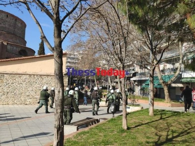 Ομάδα διαδηλωτών και ΜΑΤ συγκρούστηκαν πέριξ του ΑΠΘ και της πλατείας Αγίου Γεωργίου, στη Ροτόντα.