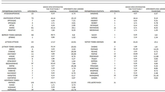 Τα κρούσματα στην υπόλοιπη Ελλάδα κατανέμονται ως εξής: