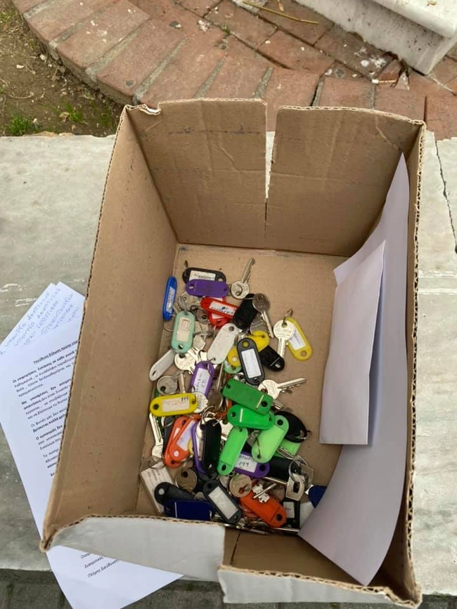 Σας παραδίδουμε λοιπόν με πόνο, τα κλειδιά των επιχειρήσεων μας. Ξεκλειδώστε τη φυλακή μας. Επιχειρήστε εσείς, αφού θεωρείτε ότι αυτό είναι εφικτό. Εμείς, πνιγήκαμε στον ωκεανό της αδιαφορίας, της εγκατάλειψης, των υποχρεώσεων , των δανείων, των οφειλών, της φτωχοποίησης. Πάρτε τα κλειδιά κι’ ανοίξτε το οξυγόνο. Θέλουμε να ζήσουμε.