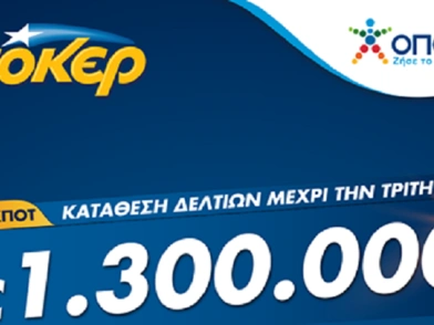 Κέρδη 1,3 εκατομμυρίων ευρώ αναμένεται να μοιράσει απόψε το τζακ ποτ του ΤΖΟΚΕΡ σε έναν ή περισσότερους νικητές της πρώτης κατηγορίας.