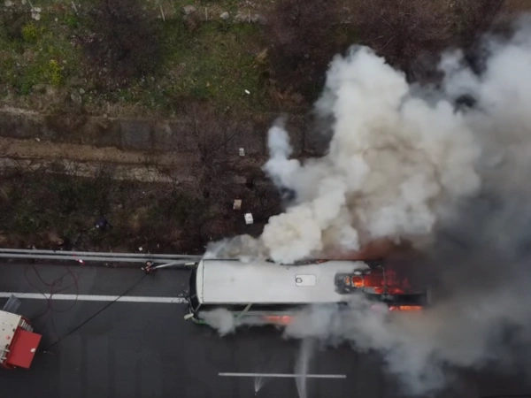 Οι 48 επιβαίνοντες πρόλαβαν να κατέβουν, δυστυχώς όμως το λεωφορείο καταστράφηκε ολοσχερώς μαζί με πολλά από τα υπάρχοντα των επιβατών.