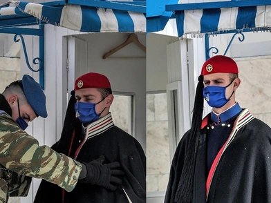 Παράλληλα, λόγω της ολισθηρότητας του δαπέδου μπροστά στο μνημείο η αλλαγή φρουράς των Ευζώνων έγινε με στρατιωτικό όχημα.