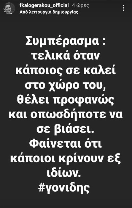 Η Φιλίτσα Καλογεράκου, με ανάρτησή της στο Instagram, άφησε αιχμές κατά του γνωστού τραγουδιστή, σημειώνοντας πως «φαίνεται ότι κάποιοι κρίνουν εξ ιδίων».