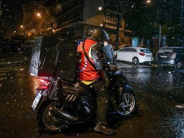 Συγκεκριμένα συστήνει στους εργοδότες να παράσχουν στους διανομείς κράνος, γάντια και αδιάβροχη στολή προστασίας για την κακοκαιρία.