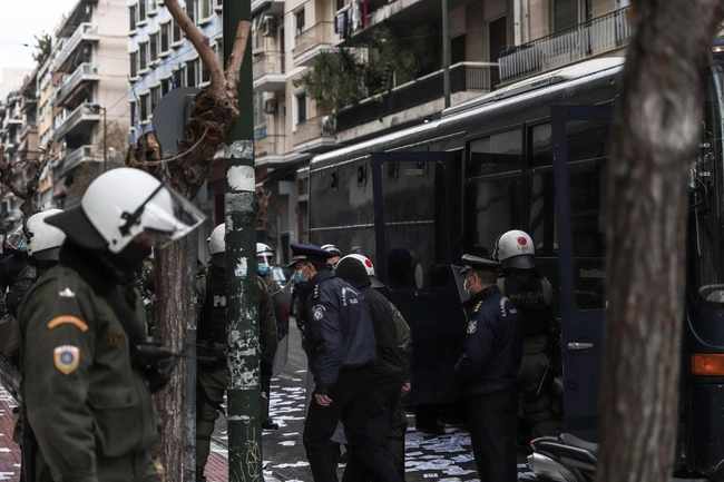 Στο σημείο έσπευσαν ισχυρές δυνάμεις της ΕΛ.ΑΣ. και έγιναν 65 προσαγωγές.
