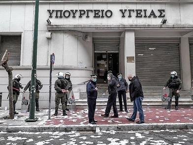 Oι αλληλέγγυοι αιφνιδίασαν τους υπαλλήλους και μπήκαν μέσα στο υπουργείο άπλωσαν πανό, φώναξαν συνθήματα και πέταξαν τρικάκια.