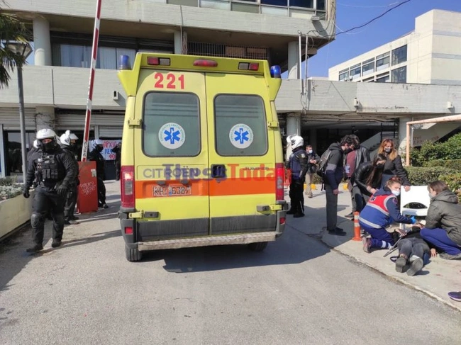 Μία φοιτήτρια λιποθύμησε λίγο πριν, λόγω της έντασης που επικρατεί στο σημείο.