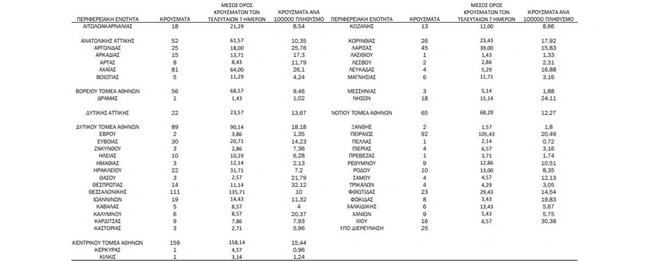 Παράλληλα, 111 κρούσματα έχουν εντοπιστεί στη Θεσσαλονίκη και 81 στην Αχαΐα.