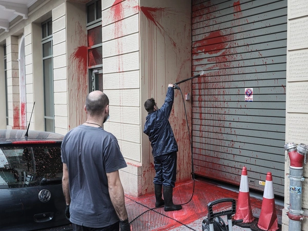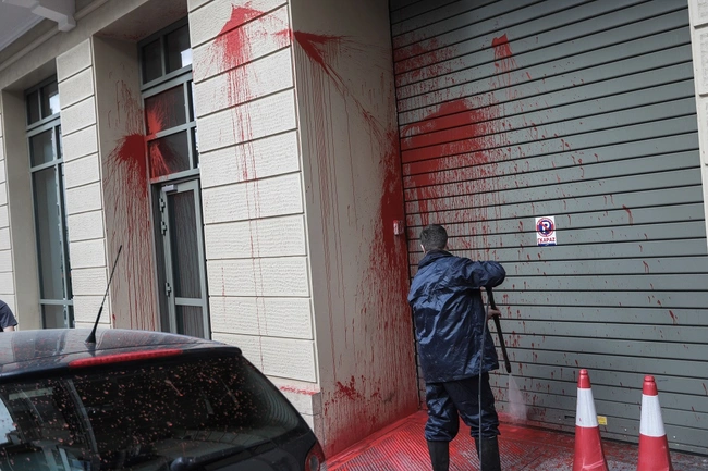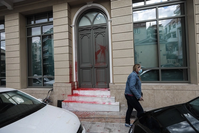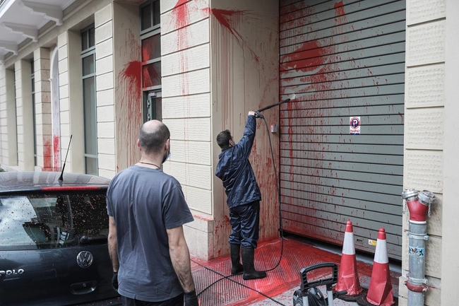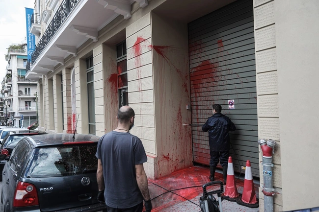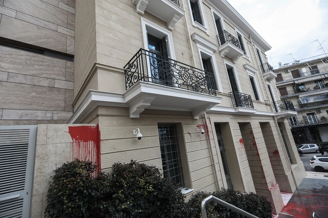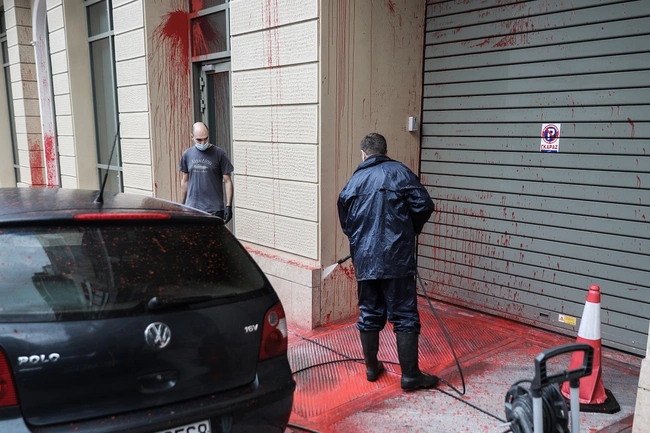 Οι άγνωστοι πέταξαν μπογιές και έγραψαν συνθήματα υπέρ του Δημήτρη Κουφοντίνα.