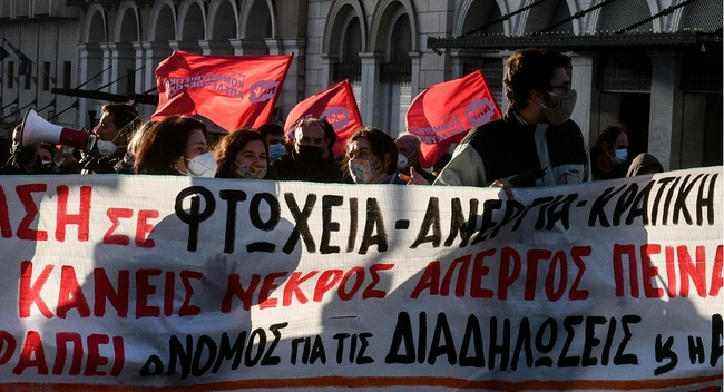 Με κεντρικό σύνθημα «Αν δεν αντισταθούμε σε κάθε γειτονιά θα βγαίνουμε απ' το σπίτι μας μονάχα για δουλειά» οργανώσεις και συλλογικότητες της Αριστεράς και του αντιεξουσιαστικού χώρου, δικηγόροι, εκπαιδευτικοί, φοιτητικοί σύλλογοι, σωματεία κι άλλοι φορείς έχουν συγκεντρωθεί αυτή την ώρα μπροστά από τη Βουλή.