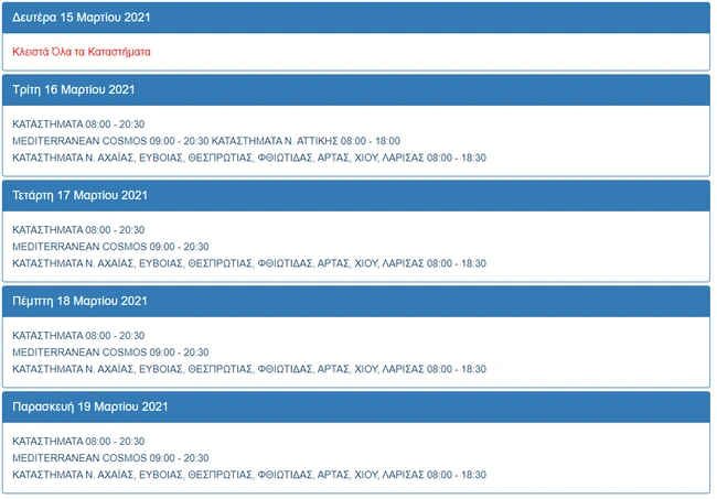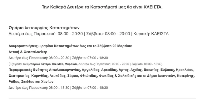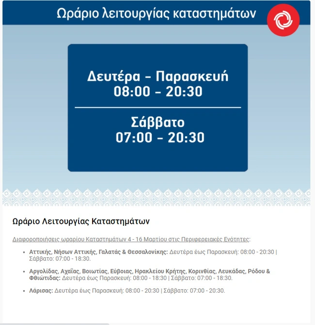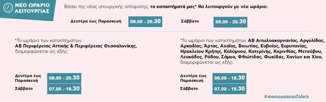 Δείτε τις αλλαγές στο ωράριο στις μεγάλες αλυσίδες...